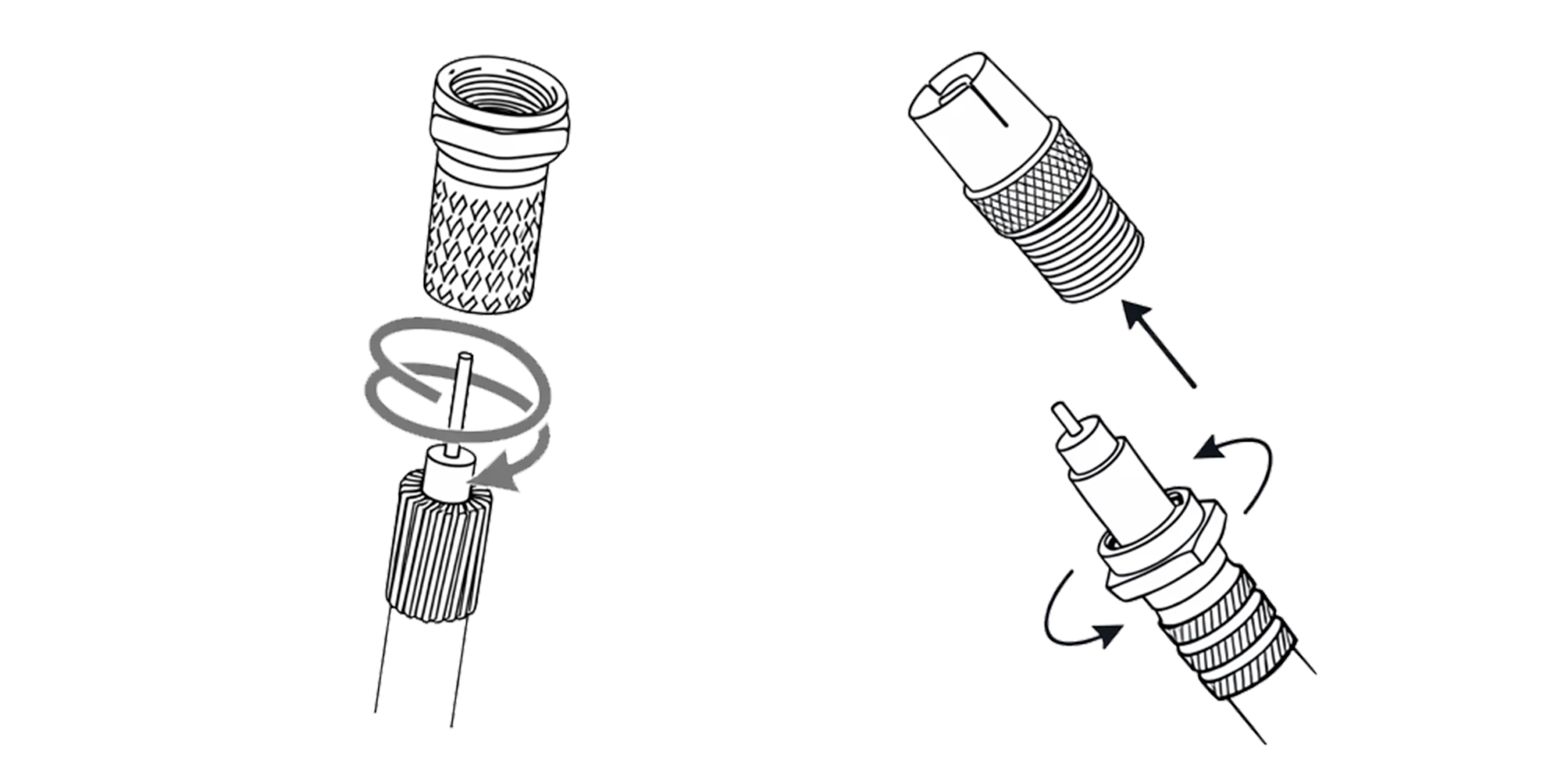 Тщательно накрутите F-разъем на подготовленный конец кабеля и подсоедините ТВ-штекер, обеспечивая стабильный и помехозащищенный контакт с вашим приемным устройством.