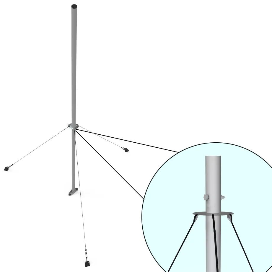 Мачта алюминиевая составная 1.5 м МИР-1,5-50 (d50 mm) используется с целью крепления уличных также внешних телевизионных, спутниковых, сотовых, Wi-Fi также иных антенн в стену здания либо фасаду сооружения, бортику либо парапету кровли, но таким образом ведь в кровле. Диаметр трубы — 50 мм, толщина стенки 1,5 мм. Материал мачты — алюминий. Мачту можно закрепить снизу при помощи пяточки, сверху при помощи растяжек. Так же мачту можно закрепить при помощи двух и более стеновых кронштейнов с выносами.