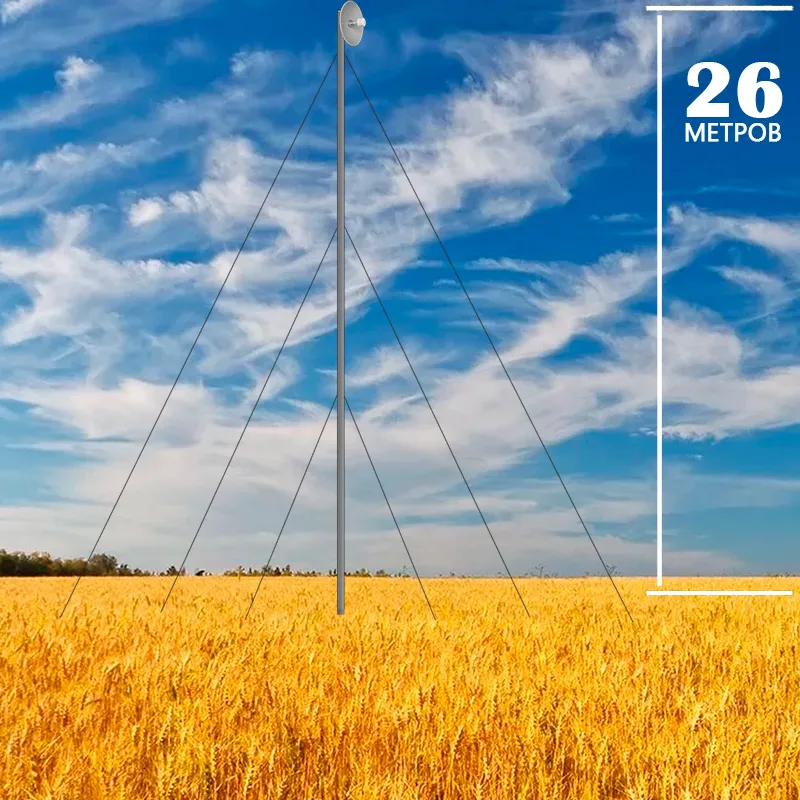 Антенная мачта МИР 26 D70 имеет толщину металла 3 мм, что дает уверенность в выдерживание нагрузок.