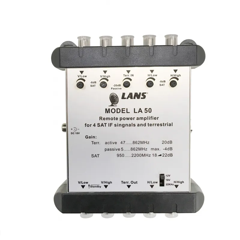 Количество входов: 5 входов (4 SAT + 1 ТВ) с регулировкой усиления по каждому входу